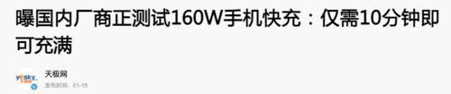更重要的是,国产手机厂商还在不断扩大自己的充电技术优势。根据天极网的消息,国内已经有厂商开始测试160瓦快充技术。据悉,搭载该技术的样机,充满电池全部电量仅耗费不到十分钟。